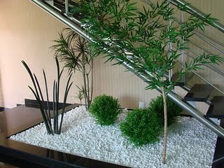 Estes jardins criam um ambiente tranquilo dentro de casa, e contribuem para a aparência residencial. A escolha das plantas que vão decorar o ambiente é muito importante para a ornamentação. O espaço vazio embaixo da escada merece uma decoração especial, equilibrada e moderna.