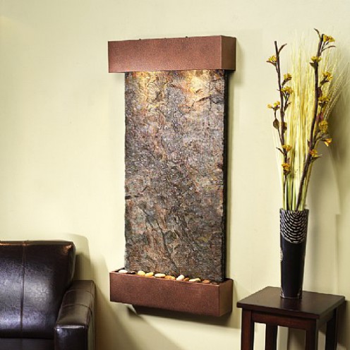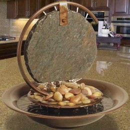As fontes são um dos objetos mais utilizados por especialistas em feng shui. Elas trazem o elemento água e ajudam a renovar a energia por conta de seu fluxo constante. Especialistas recomendam dispor a fonte próxima à parede da porta principal. Outra localização indicada é no canto esquerdo de quem entra na sala.