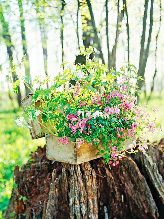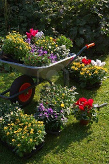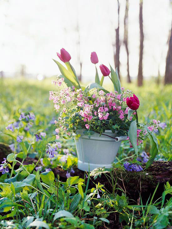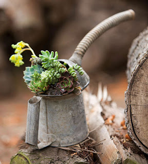 Um jardim não precisa de muito para ficar bonito, aqui estão várias formas de fazer isso. A revista Better Homes and Garden é maravilhosa, não canso de suas matérias, e aqui temos um pouquinho...de Vasos diferentes com objetos reciclados.